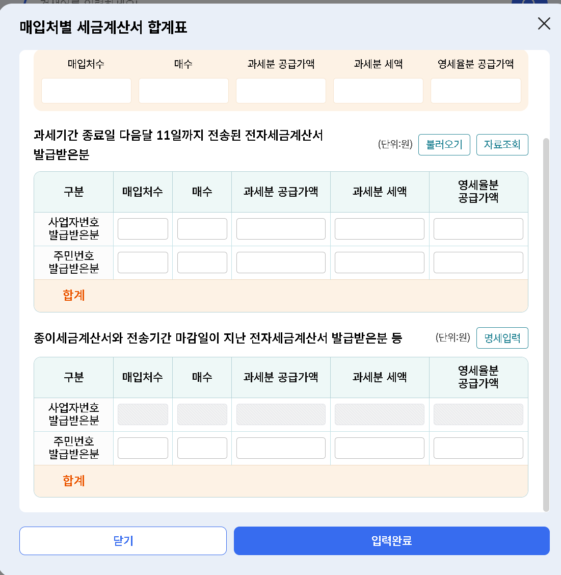 전자세금계산서는 불러오기 하시면됩니다. 예를 들어 사업자명으로 월세 내신것들을 전자세금계산서로 받고있으면 알아서 불러오기 하면 자동으로 뜹니다.