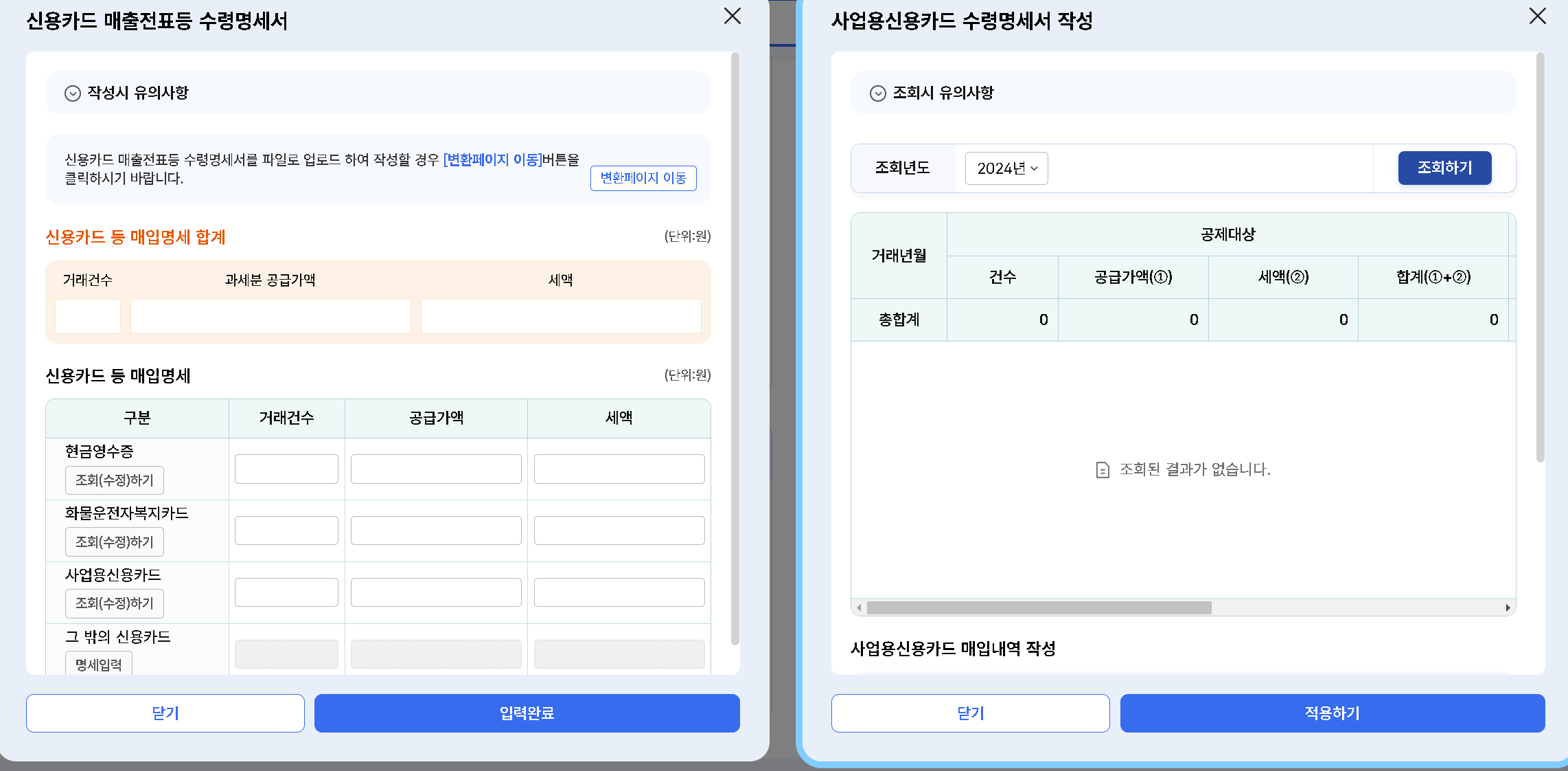 이렇게 신용카드 발행금액과 현금영수증 두개를 적용하기를 눌러서 금액이 나온그대로 입력완료해주면됩니다.